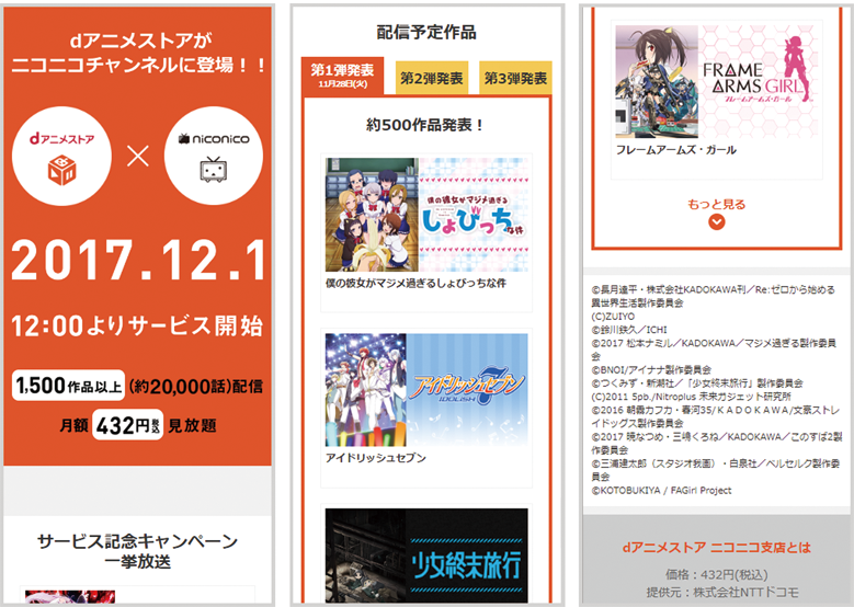 dアニメストア ニコニコ支店 3日間限定のティザーページ